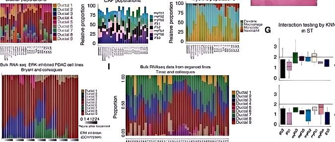 利用22个空间转录组样本进行验证,证实了Ductal 4(基底样)肿瘤细胞与CXCL10+ 成纤维细胞在空间上紧密相邻。